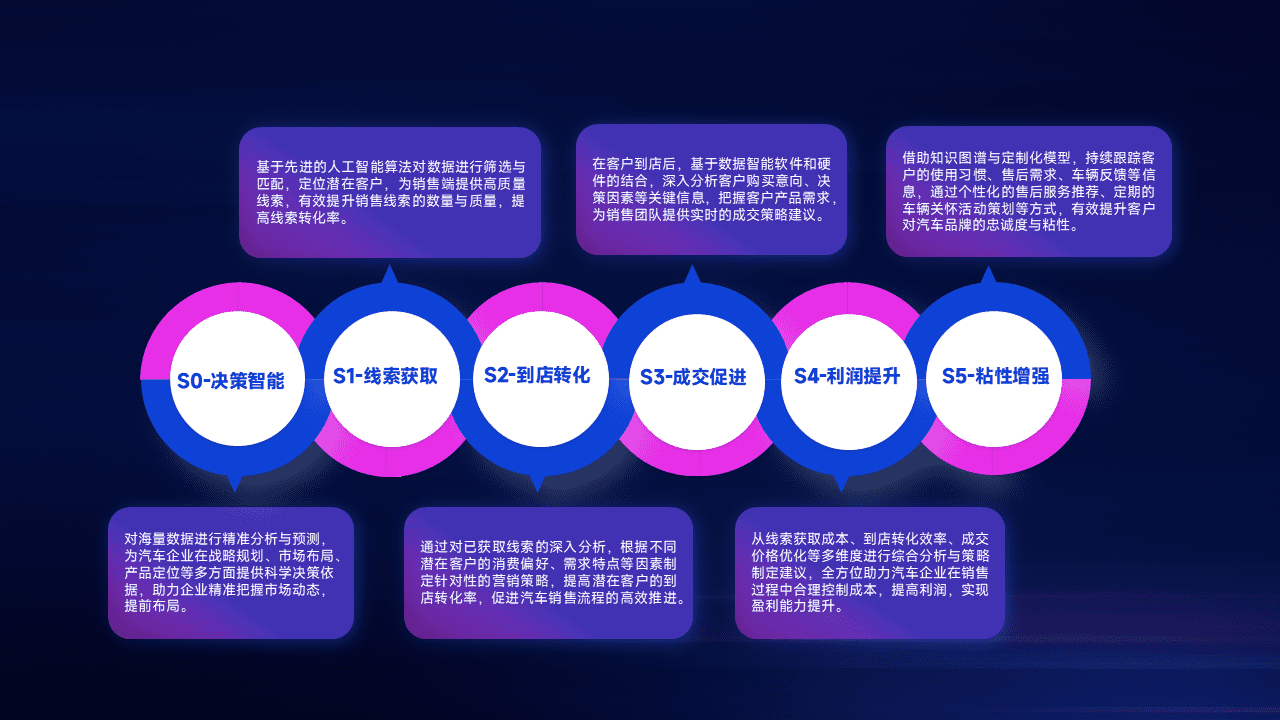 通过拓宽潜在客户来源、、优化线索分配并提高到店转化率,,,以增强销售效率。。。。同时,,,利用线索数据不断优化分析模型,,有效提升转化率,,,,扩大营销影响力。。